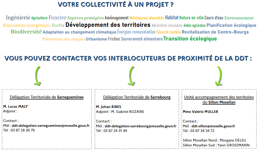 A ce titre, la DDT propose son accompagnement et ses conseils à l'ensemble des acteurs locaux, aussi bien sur le volet réglementaire que sur le partage des politiques publiques.