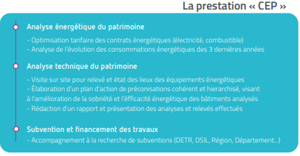 Le conseiller réalise un bilan énergétique et définit les objectifs et les priorités. Il propose des solutions concrètes pour réduire les dépenses en maîtrisant les consommations et en limitant l'impact environnementales de vos bâtiments.