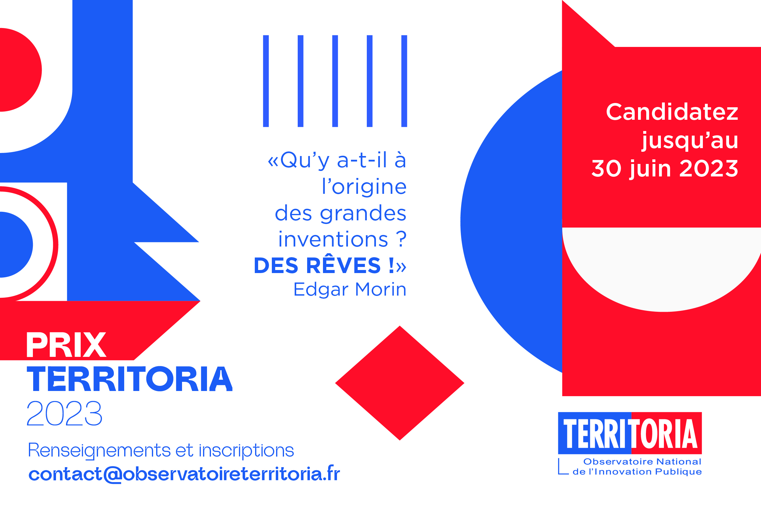 Partagez vos réussites en participant au prix TERRITORIA 2023 ! Depuis 1986, l'Observatoire National de l'Innovation Publique récompense et met en valeur les initiatives exemplaires des collectivités territoriales. Ses lauréats témoignent d'une action publique locale créative et efficiente.